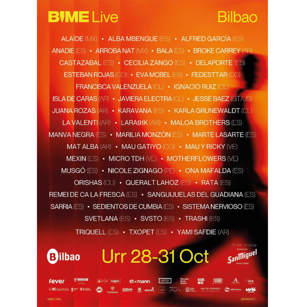 Delaporte (ES), Mau y Ricky (VE), Orishas (CU), Queralt Lahoz (ES), Javiera Electra (CL), Sanguijuelas del Guadiana (ES), Yami Safdie (AR), Esteban Rojas (CO), Lara91K (AR), Jesse Baez (GT), y Txopet (ES), serán algunas de las propuestas que formarán parte de BIME Live, el festival de ciudad de música en directo y showcases de BIME, que cuenta con el apoyo del Ayuntamiento de Bilbao y Cervezas San Miguel.BIME Pro incorpora en su agenda profesional un espacio de creación que incluirá herramientas prácticas, actividades, conversaciones y talleres diseñados para impulsar el desarrollo profesional y creativo. Las entradas para BIME Bilbao 2025 están disponibles en la web oficial bime.org a través de Fever, ticketing partner oficial del encuentro.